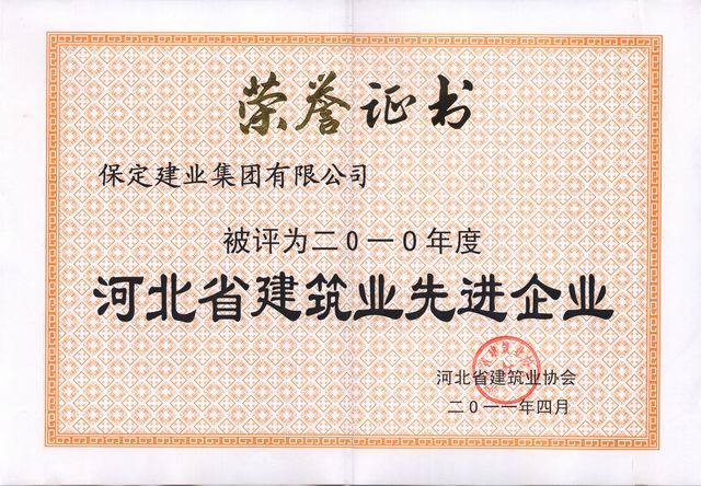 2010年度河北省建筑業先進企業